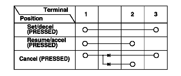 Home >> Honda >> 2009 >> S2000 L4-2.2L >> Repair and Diagnosis >> Cruise Control >> Cruise Control Switch >> Testing and Inspection >> Cruise Control Set/Decel, Resume/Accel, Cancel Switch Test/Replacement