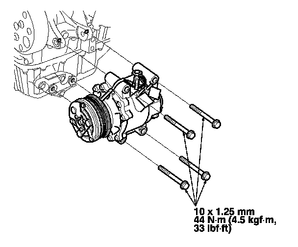 9. Install the A/C compressor in the reverse order of removal, and note these items: