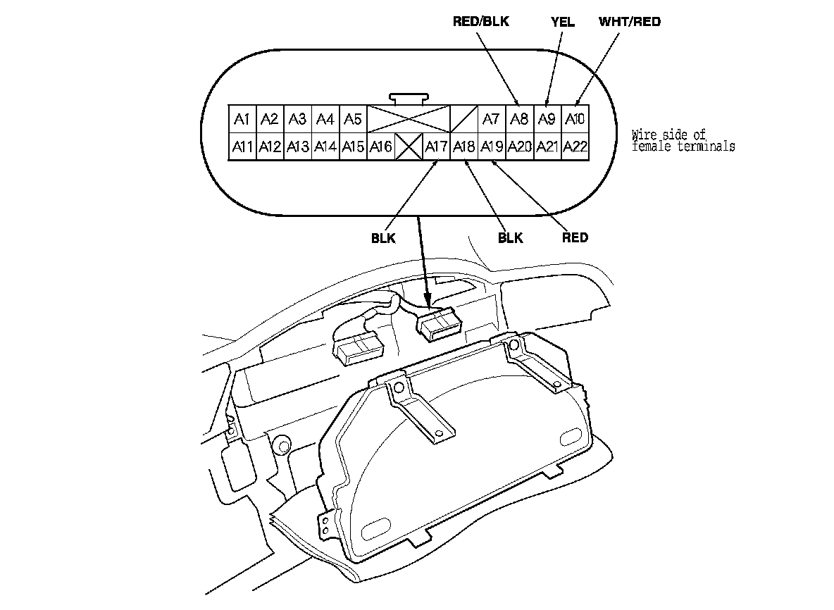 2. Inspect the gauge assembly connector A (22P) terminals to be sure they are all making good contact.