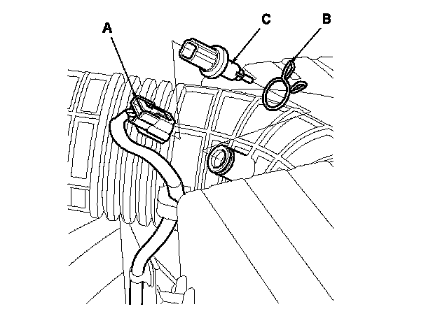 Remove the clip (B) and the IAT sensor (C).