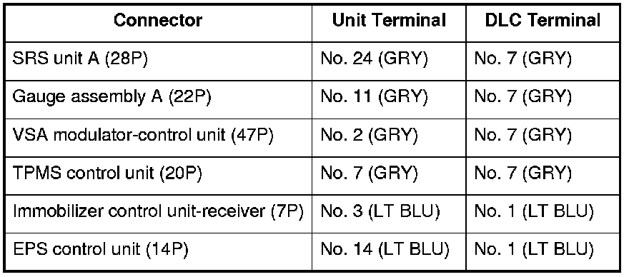 NO - Repair short in the wire between the DLC (DIAG-H) and the EPS control unit, the immobilizer control unit-receiver, the DLC (K-line), the gauge assembly, the SRS unit, the VSA modulator-control unit, or the TPMS control unit (with TPMS).