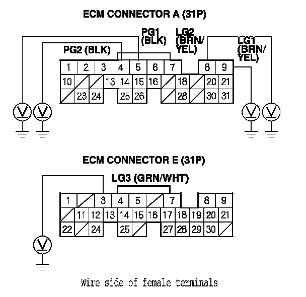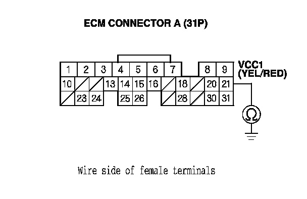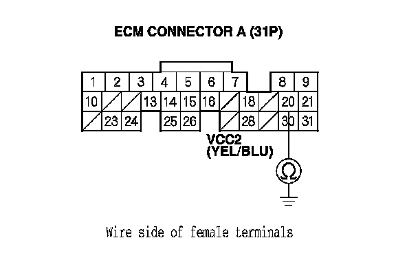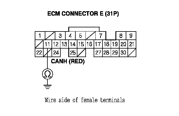 31. Check for continuity between ECM connector terminal E11 and body ground.