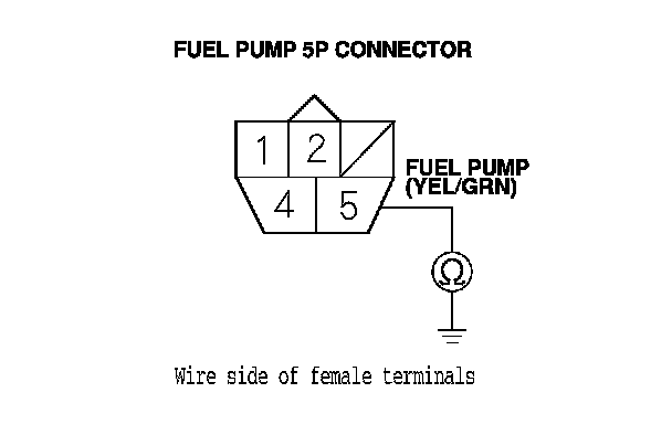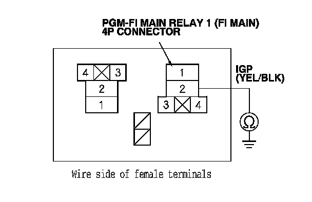 49. Check for continuity between PGM-FI main relay 2 (FUEL PUMP) 4P connector terminal No. 1 and body ground.