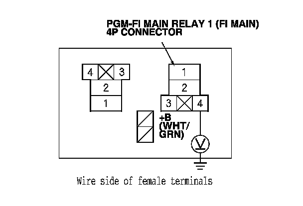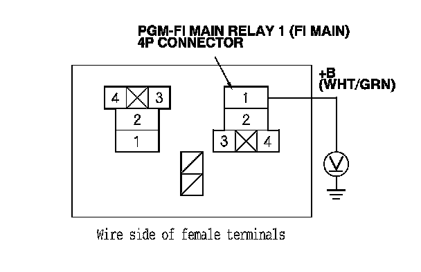 72. Measure the voltage between PGM-FI main relay 1 (FI MAIN) 4P connector terminal No. 1 and body ground.