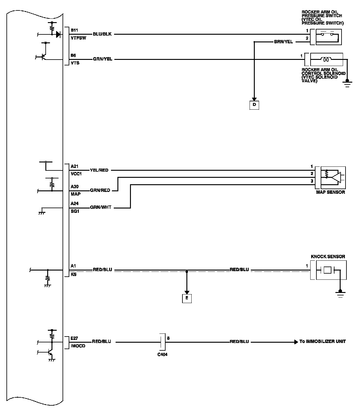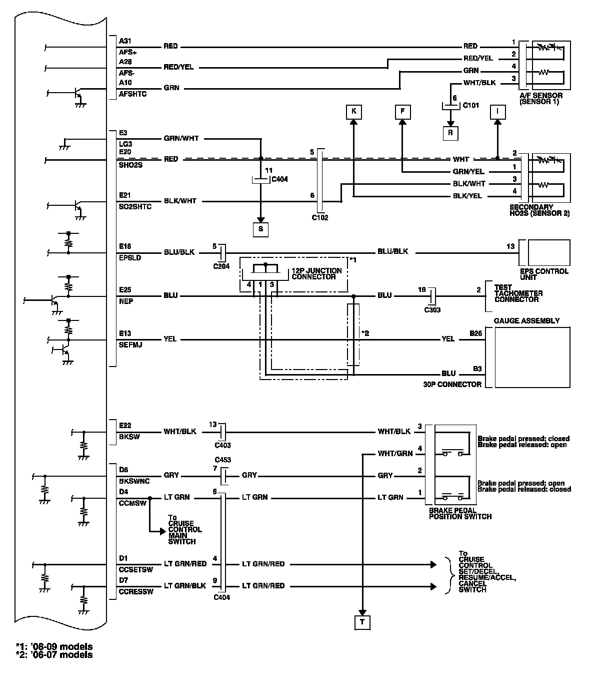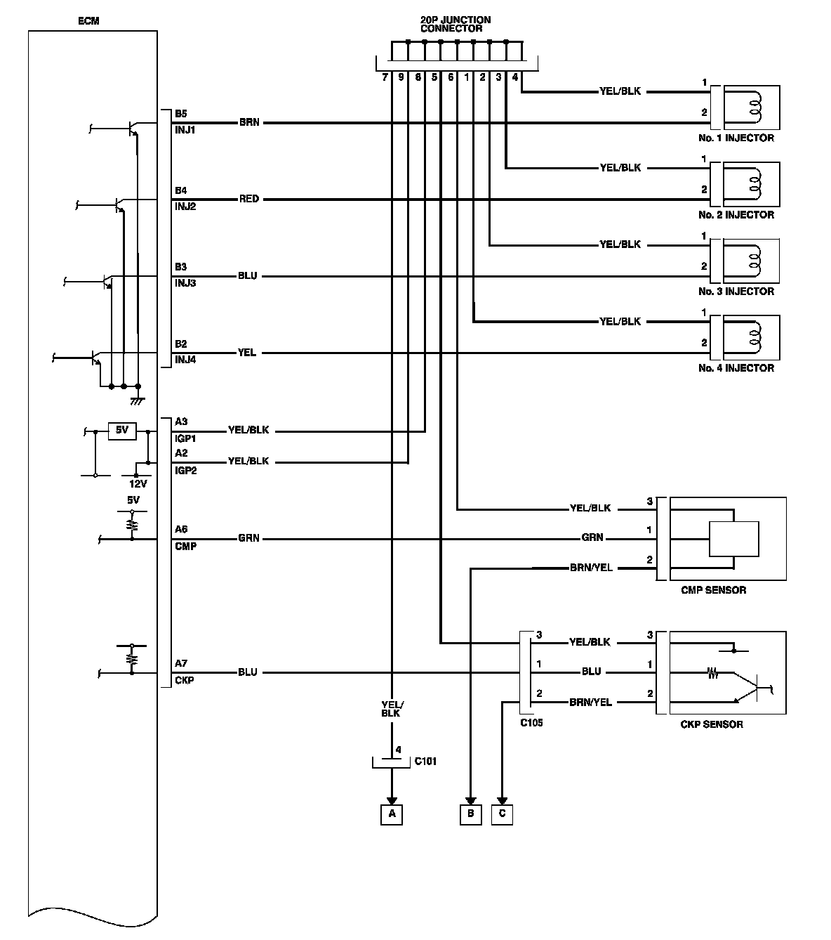 PGM-FI main relay 1 (FI MAIN) is energized whenever the ignition switch is turned to ON (II), to supply battery voltage to the ECM, power to the injectors, and power for PGM-FI main relay 2 (FUEL PUMP). PGM-FI main relay 2 (FUEL PUMP) is energized to supply power to the fuel pump for 2 seconds when the ignition switch is turned to ON (II), and when the engine is cranking or running.
