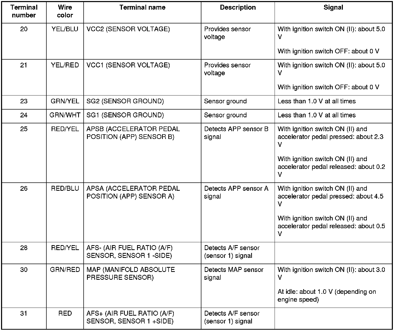 As the accelerator pedal position changes, the sensor varies the signal voltage to the ECM.