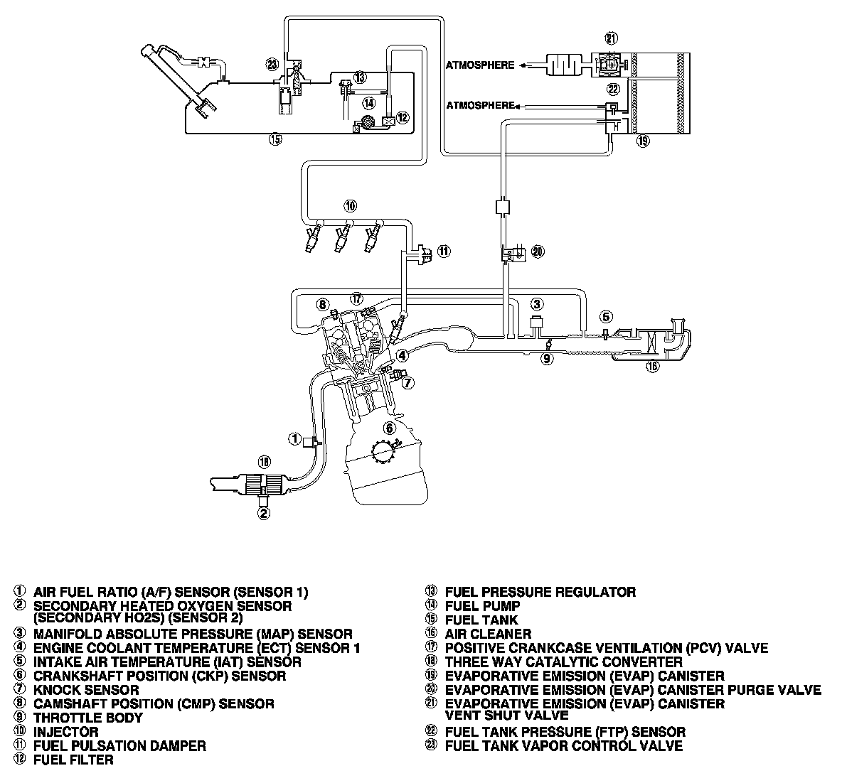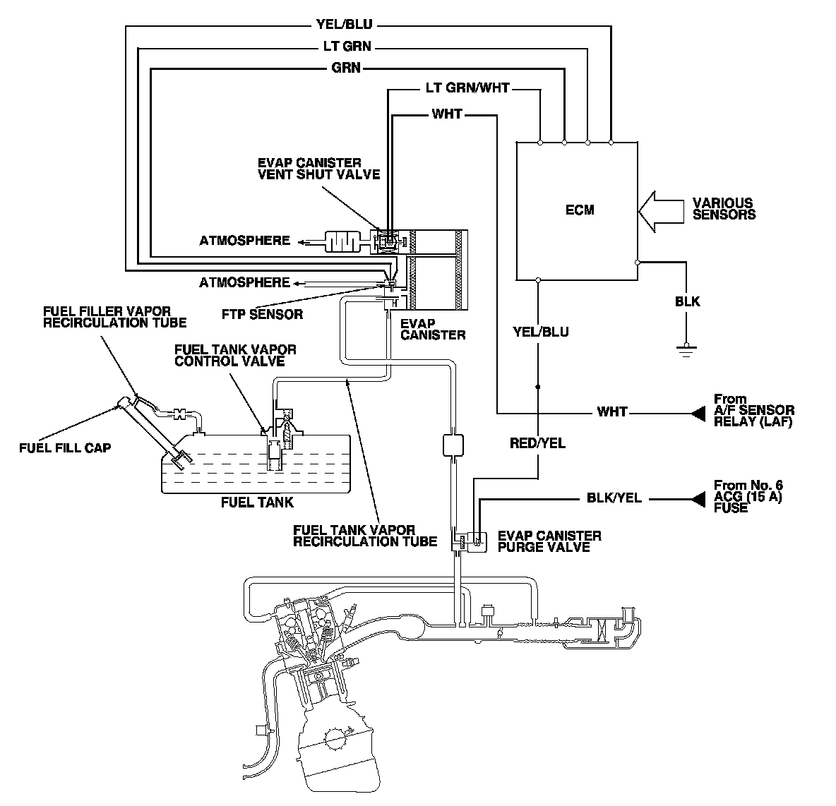 The EVAP controls minimize the amount of fuel vapor escaping to the atmosphere. Vapor from the fuel tank is temporarily stored in the EVAP canister until it can be purged from the canister into the engine and burned.