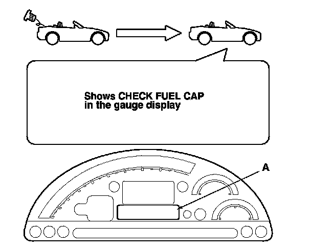 The first time a leak is detected, a CHECK FUEL CAP message is shown in the gauge display (A). To scroll to another message, press the select/reset button. The CHECK FUEL CAP message appears each time you restart the engine until the system turns the message off. Turn the engine off, then replace or tighten the fuel fill cap until it clicks at least once.