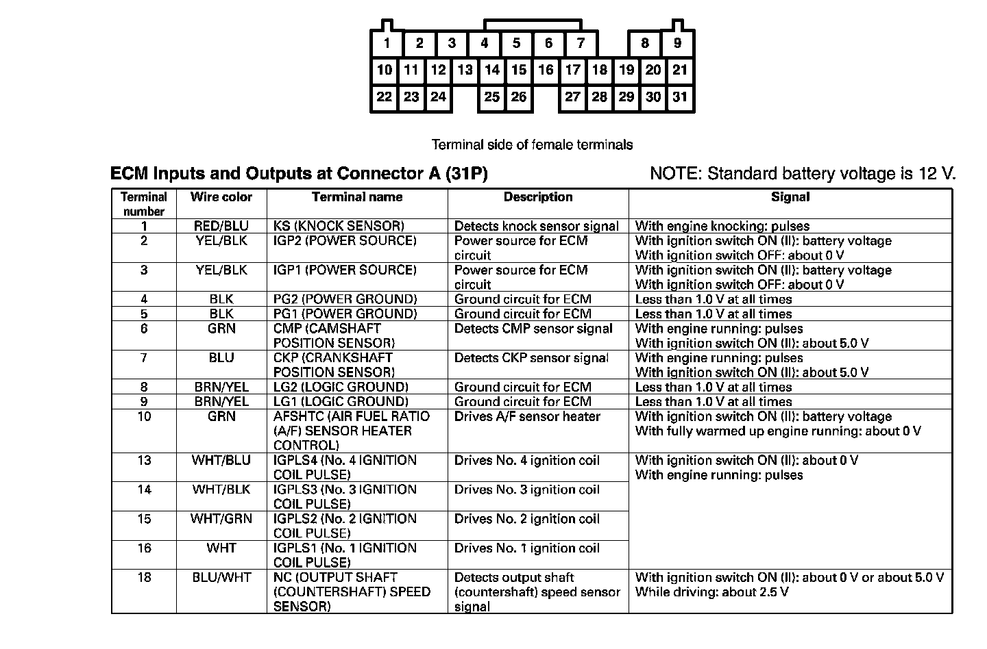 ECM Inputs And Outputs At Connector A