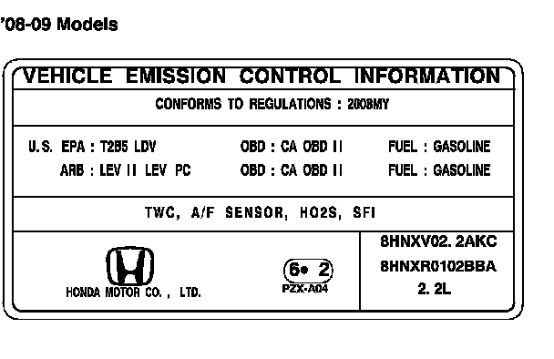 THIS VEHICLE CONFORMS TO U.S. EPA TIER 2 BIN 5 REGULATIONS APPLICABLE TO 2006 MODEL YEAR NEW PASSENGER CARS AND CALIFORNIA REGULATIONS APPLICABLE TO 2006 MODEL YEAR NEW LEV II LEV PASSENGER CARS.
