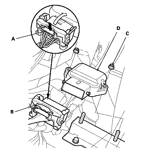 3. Remove the nuts (C) and the throttle actuator control module (D).