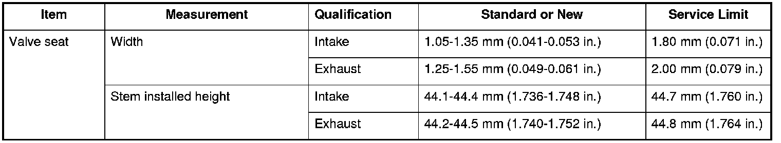 Valve Seat Specifications