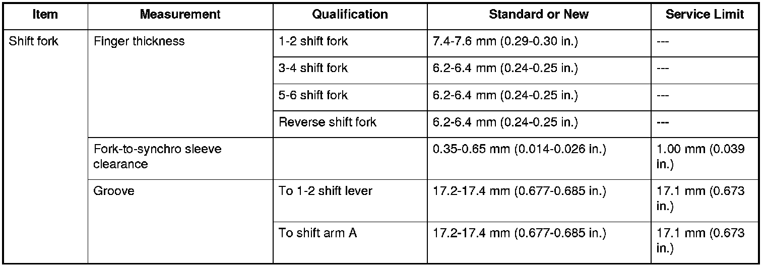 Shift Fork Specifications