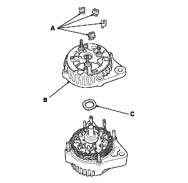 - If either the rotor or stator drive-end housing is damaged, replace the alternator.