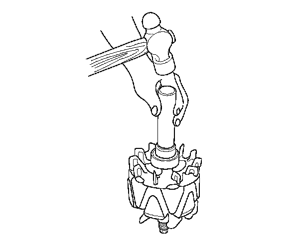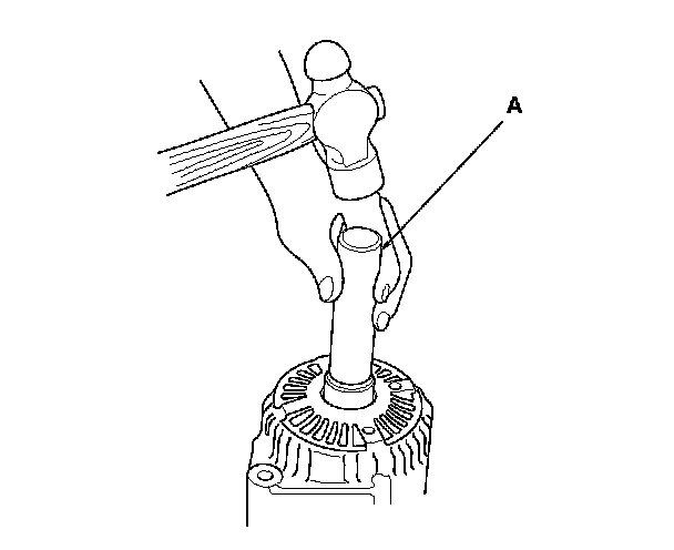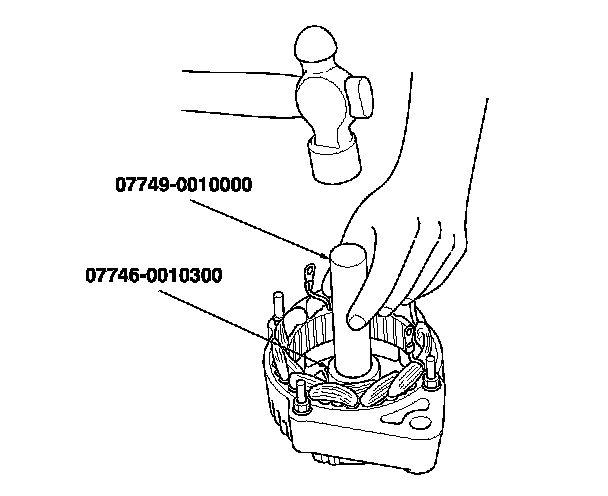 17. Install a new front bearing in the stator drive-end housing with a hammer, the driver, and the attachment.