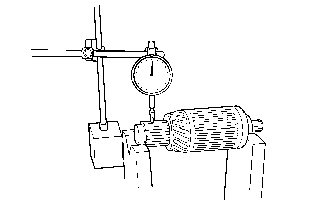 - If the commutator runout is not within the service limit, replace the armature.
