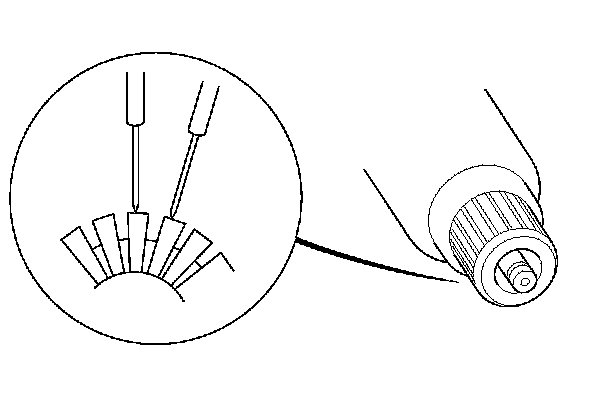 8. Use an ohmmeter to check for continuity between the segments of the commutator. If there is an open circuit between any segments, replace the armature.