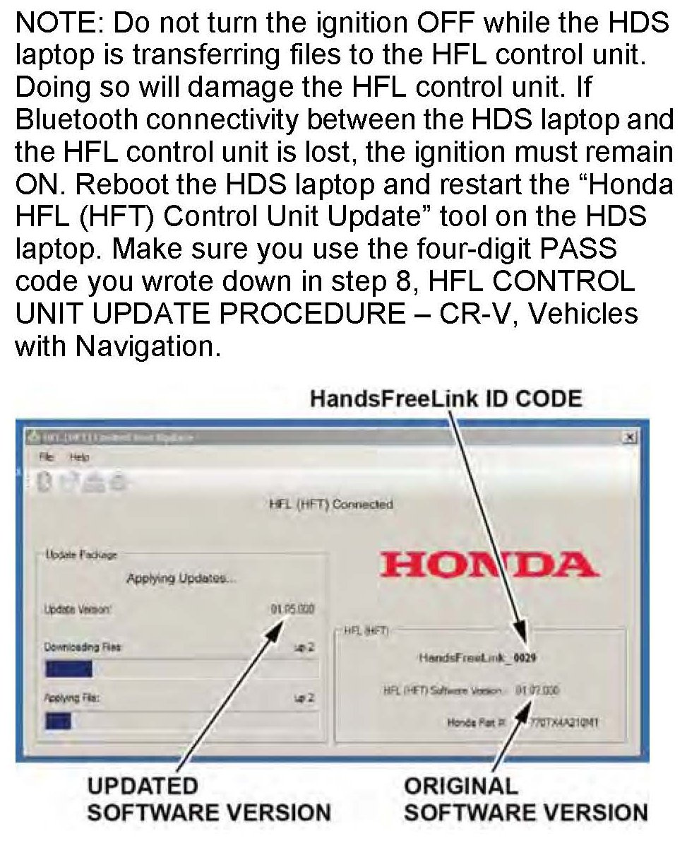 Home >> Honda >> 2009 >> S2000 L4-2.2L >> Repair and Diagnosis >> Technical Service Bulletins >> All Technical Service Bulletins >> Cell Phone - Programmable HFL (HFT) Unit Update Info. >> Part Number Fix Update Procedure - CR-V >> Vehicles With Navigation