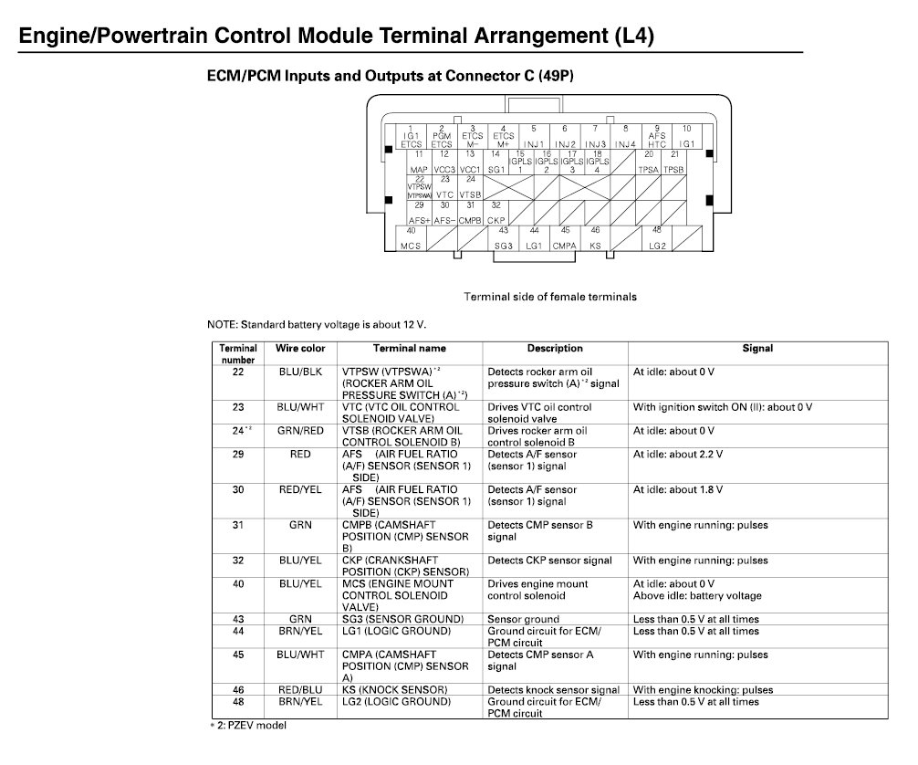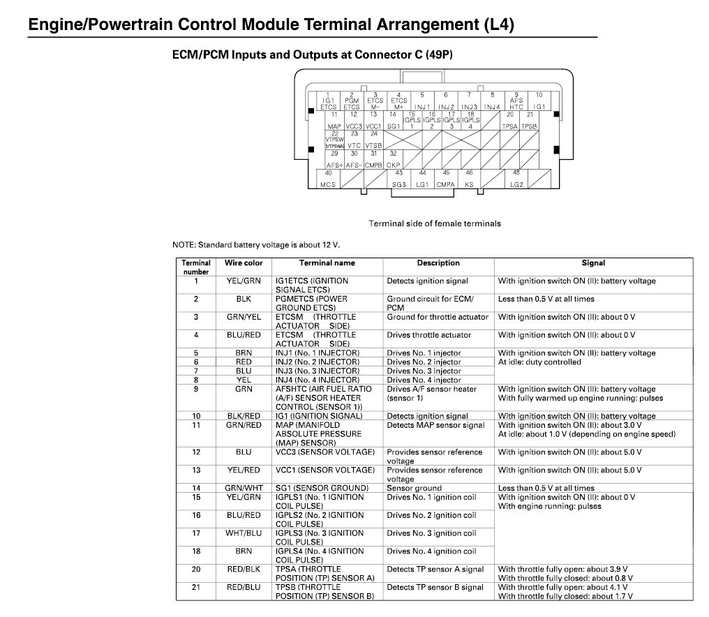 ECM/PCM Inputs And Outputs At Connector C