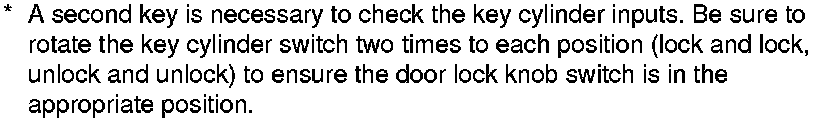 11. The following tables list the circuits that can be checked in Test Mode 2. Operate the switch that is most closely related to the problem. If the circuit is OK, the ceiling light will blink once. If the circuit is faulty, there will be no indication.