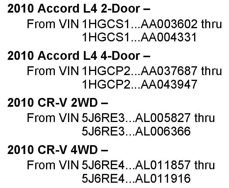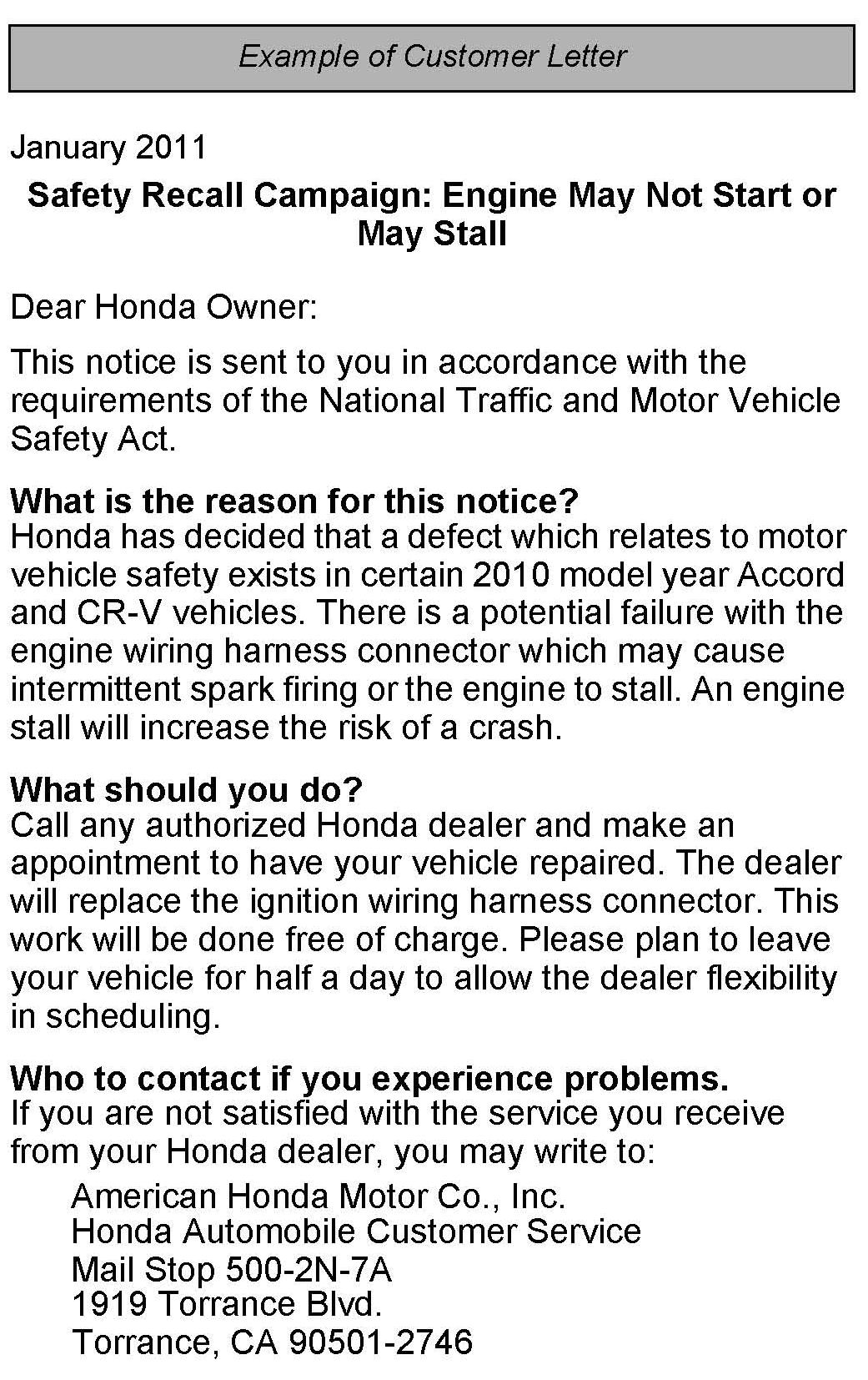 Home >> Honda >> 2010 >> Accord L4-2.4L >> Repair and Diagnosis >> Powertrain Management >> Relays and Modules - Powertrain Management >> Relays and Modules - Computers and Control Systems >> Engine Control Module >> Technical Service Bulletins >> All Technical Service Bulletins >> Recall - Engine Stalling/No Start Condition