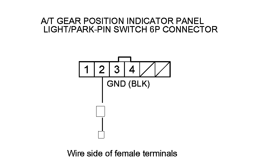 11. Check for continuity between A/T gear position indicator panel light/park-pin switch 6P connector terminal No. 1 and body ground.