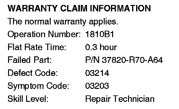 1. Update the PGM-FI software with the HDS. Refer to Service Bulletin 01-023, Updating Control Units/ Modules.