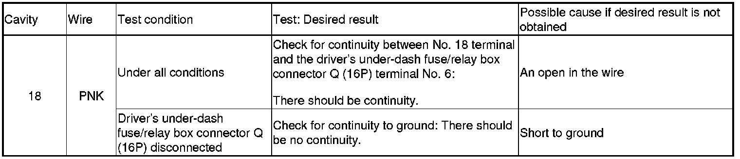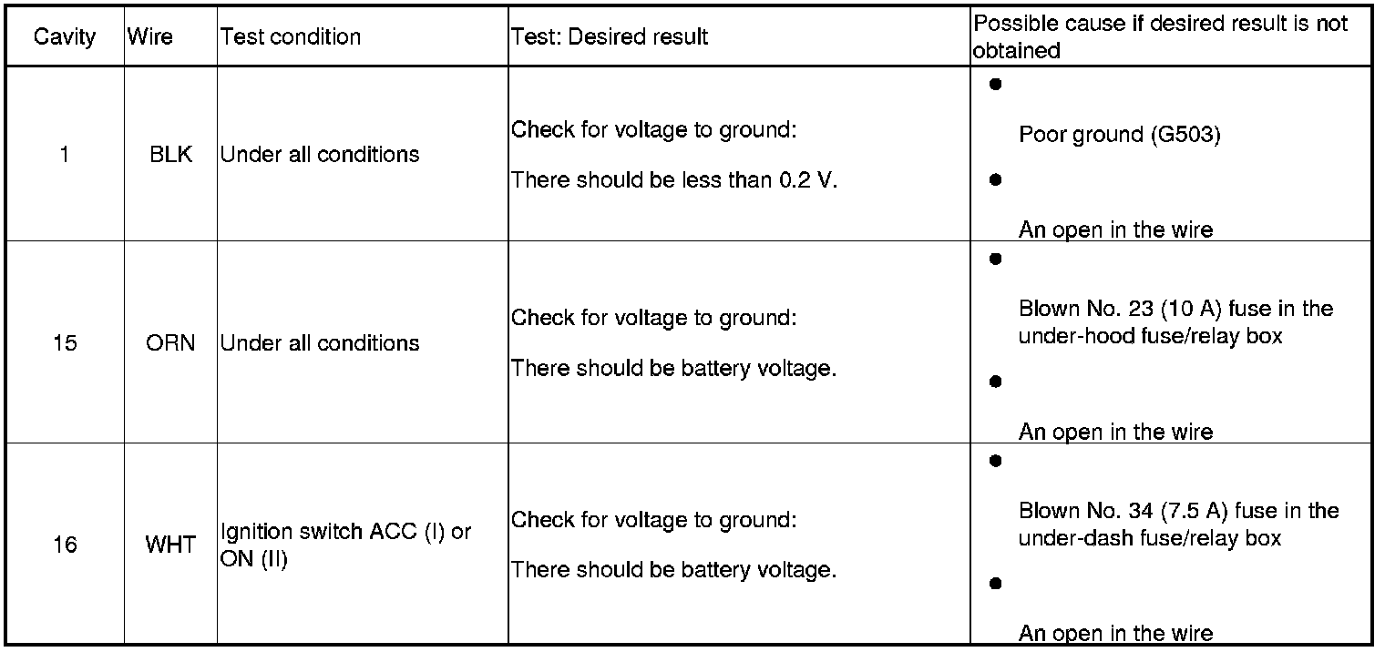 4. Reconnect the connector and make these input tests at the connector.