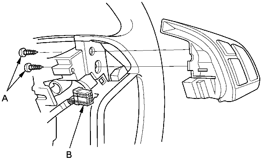 2. Remove the screws (A). Disconnect the 12P connector (B), then remove the cruise control combination switch.