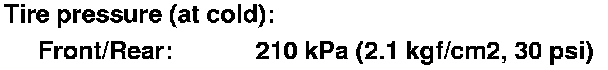 4. Check the tire sizes and pressures.