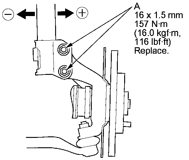 10. Replace the damper pinch bolts with the adjusting bolts (A), and adjust the camber angle.