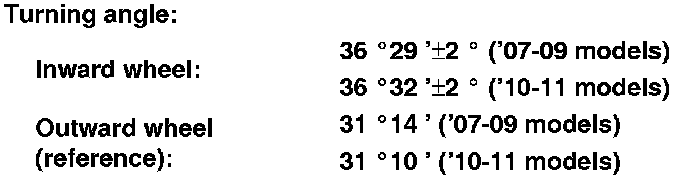 1. Turn the wheel right and left while applying the brake, and measure the turning angle of both wheels.