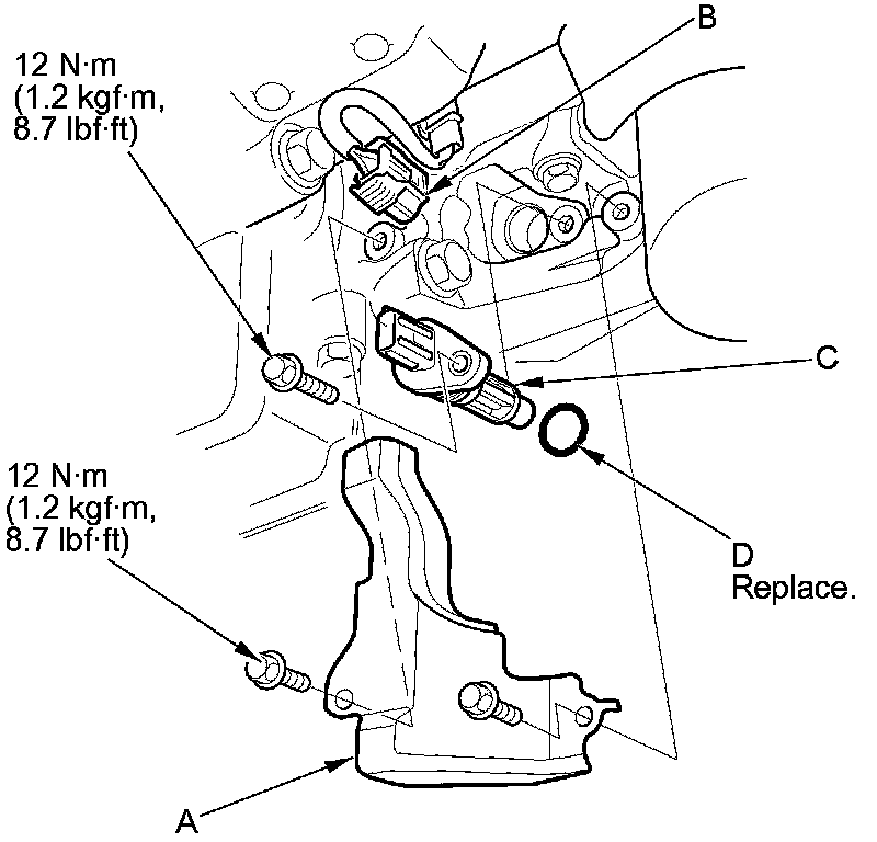 5. Install the parts in the reverse order of removal with a new O-ring (D).