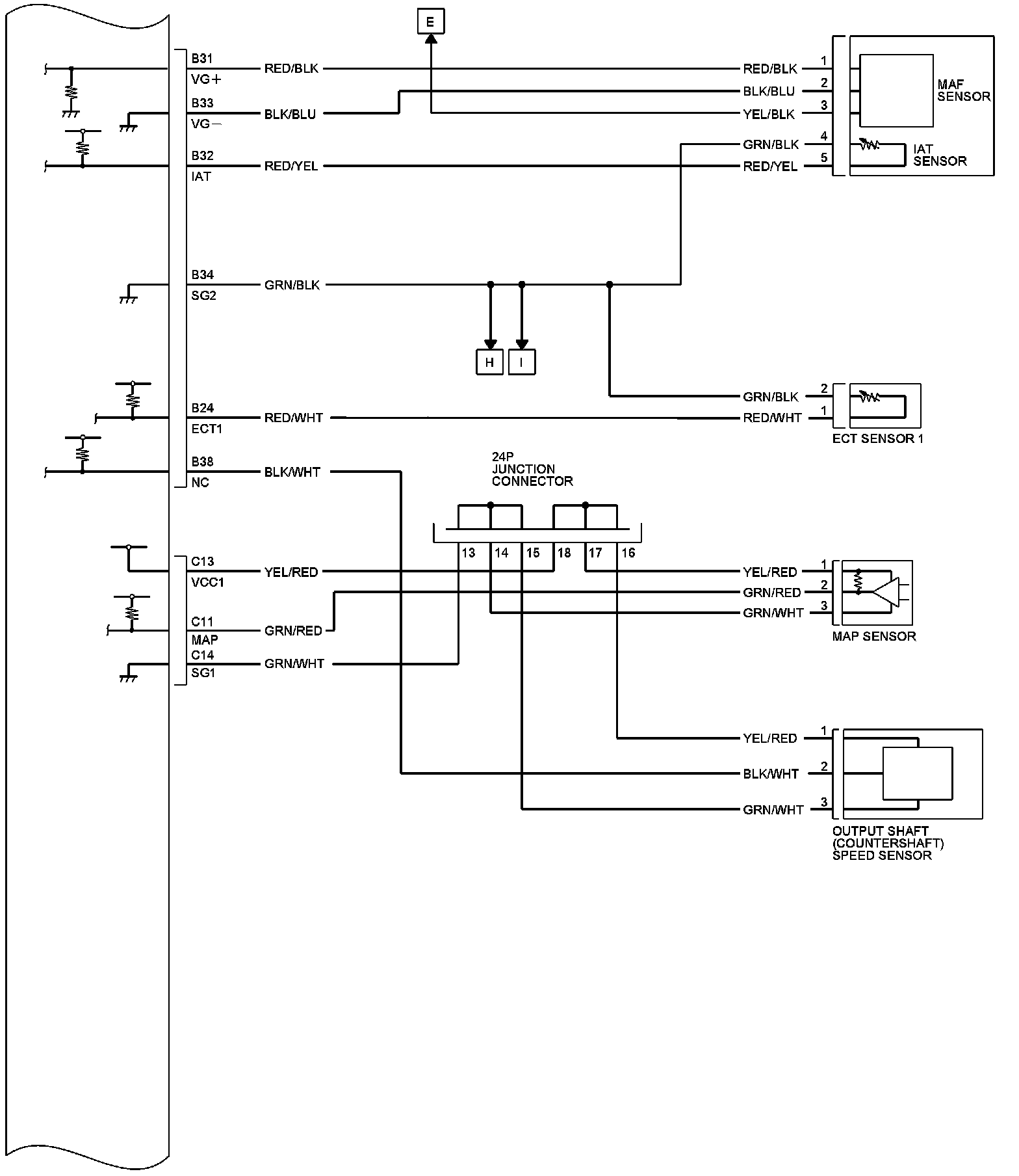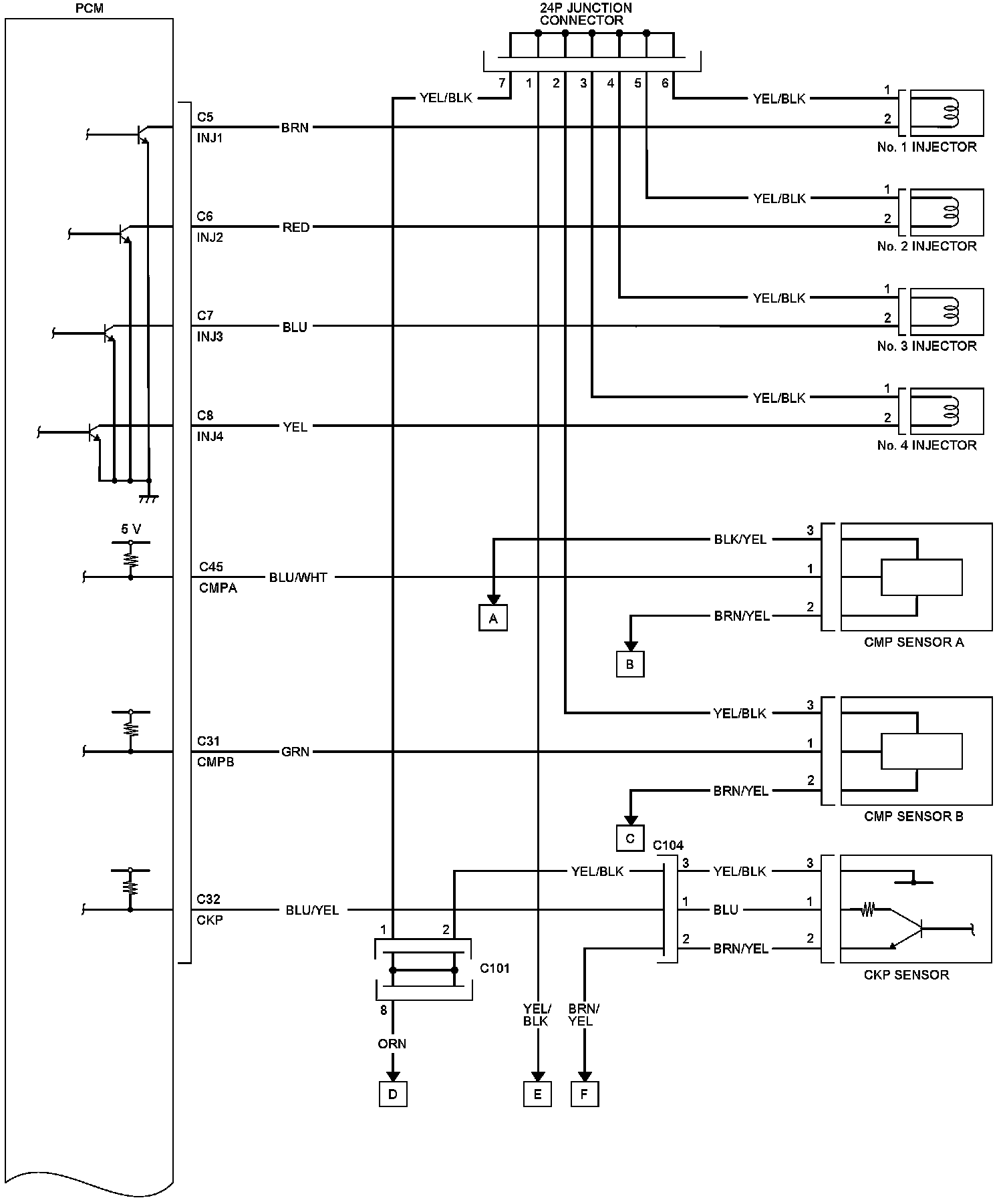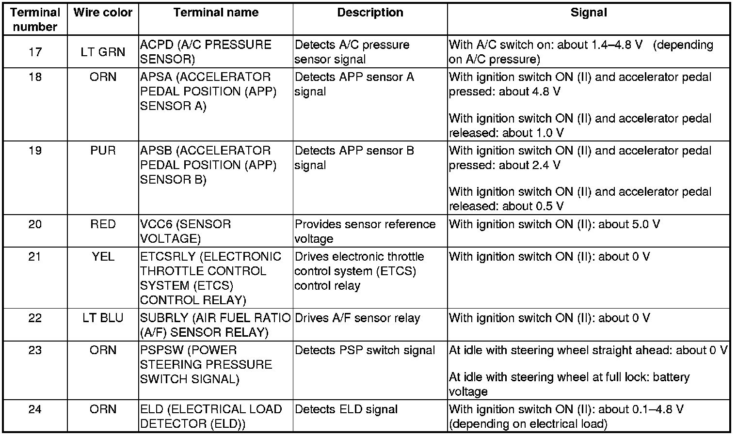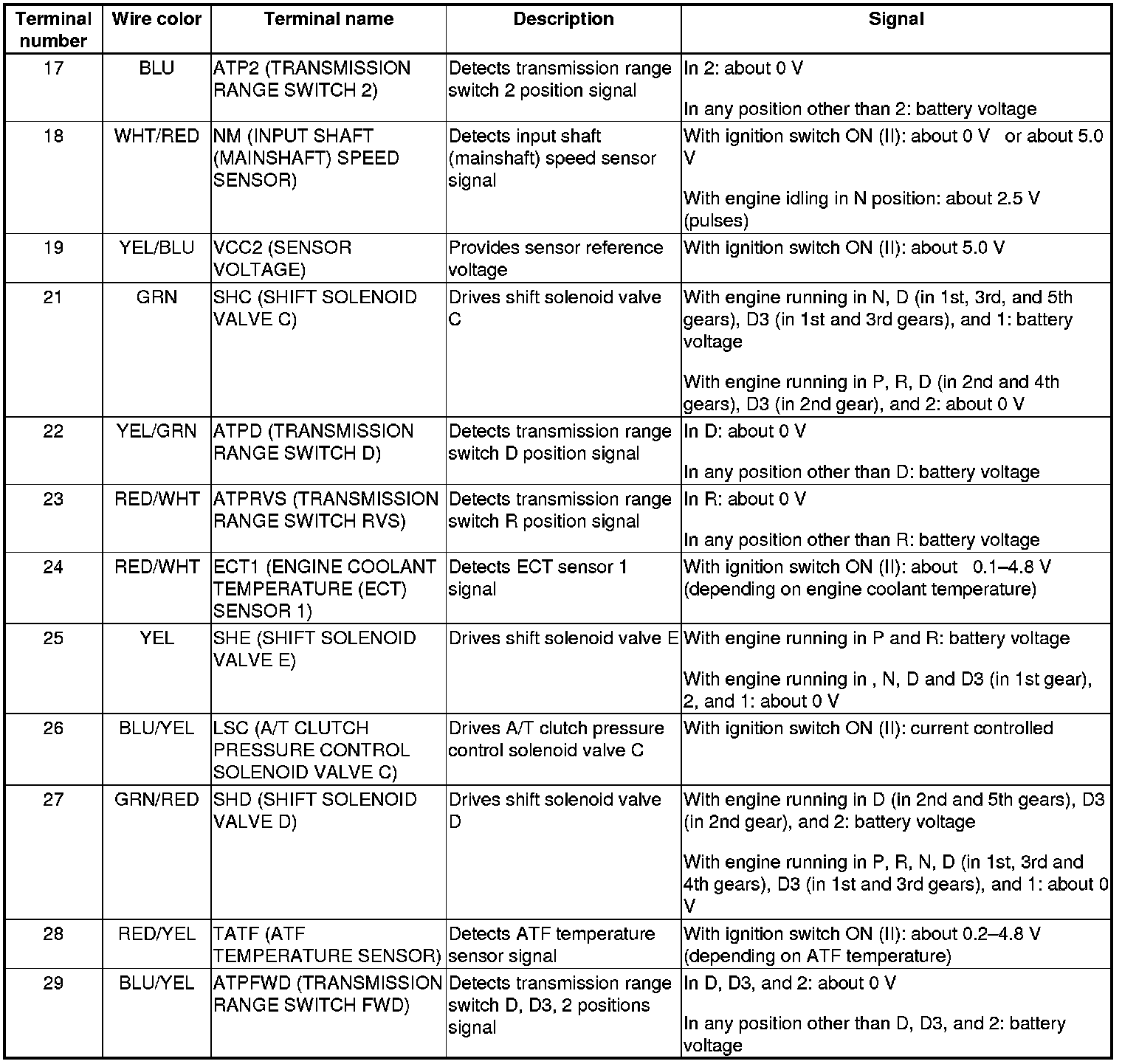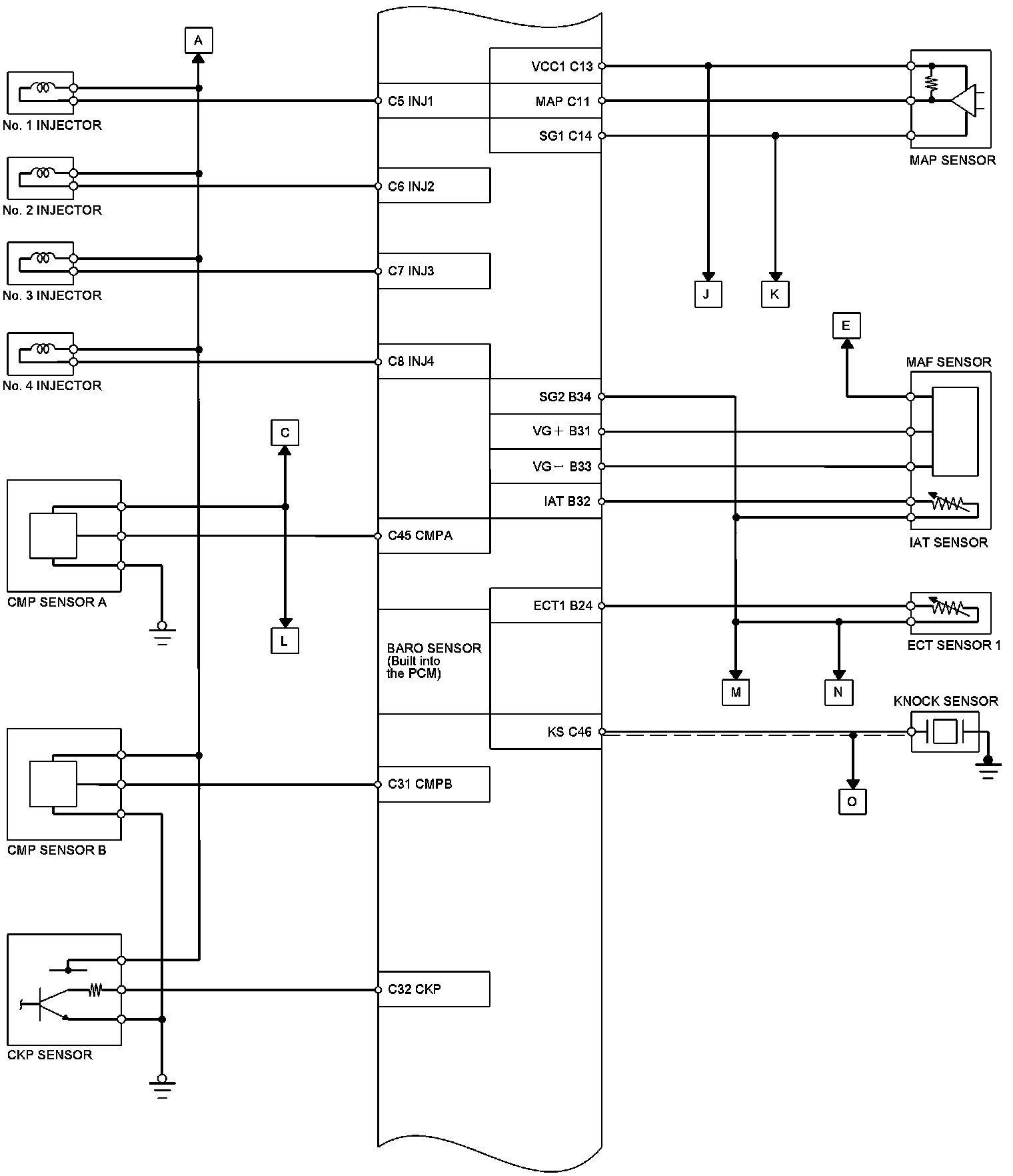 PCM Inputs and Outputs at PCM Connector C ((circle)) (49P)