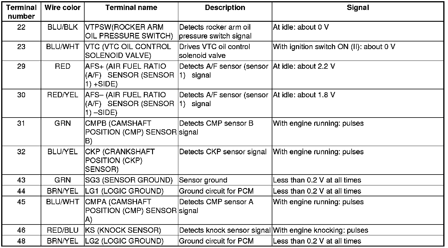 PCM Inputs and Outputs at PCM Connector A ((square)) (49P)