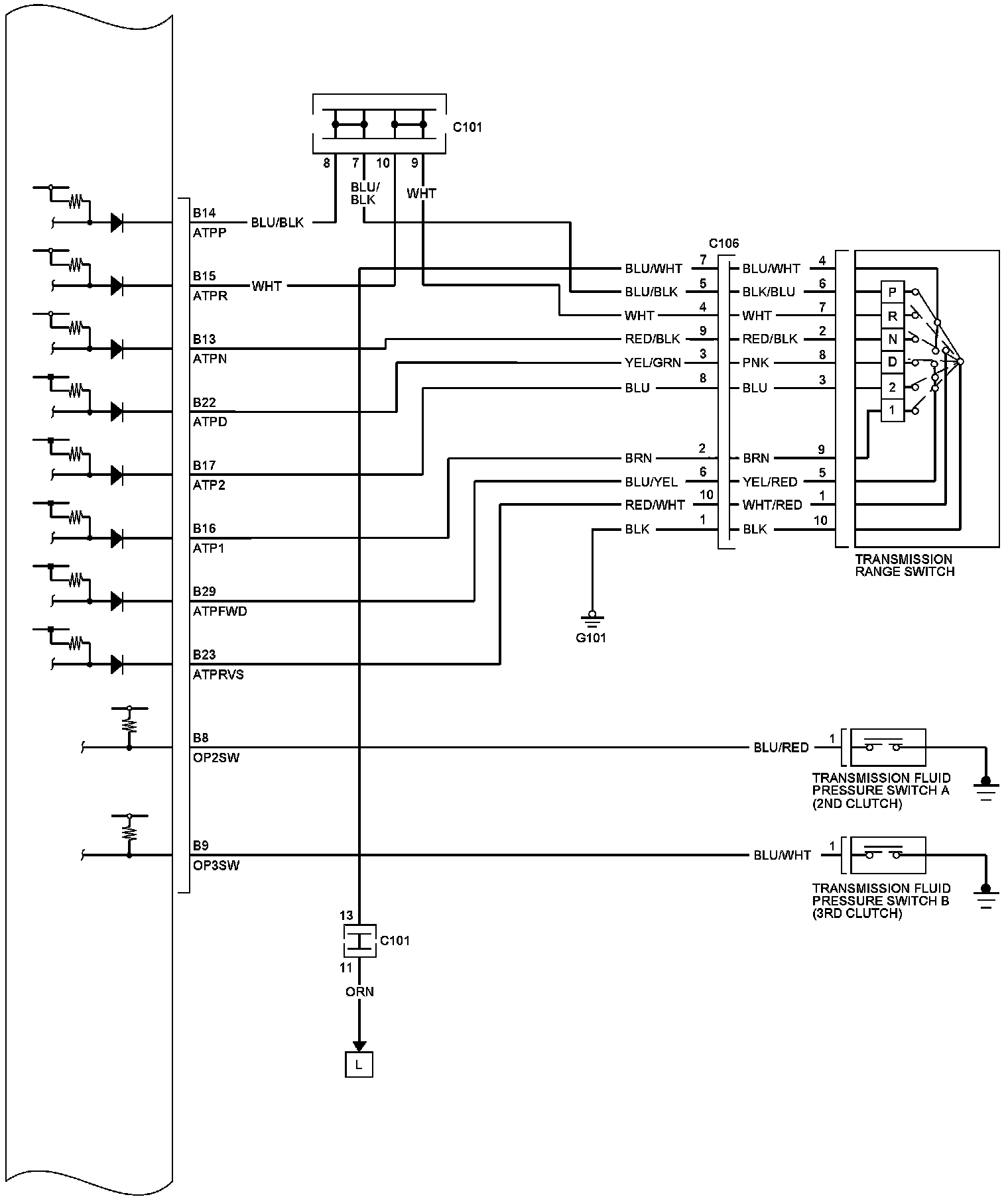 PCM Inputs and Outputs at PCM Connector B ((triangle)) (49P)
