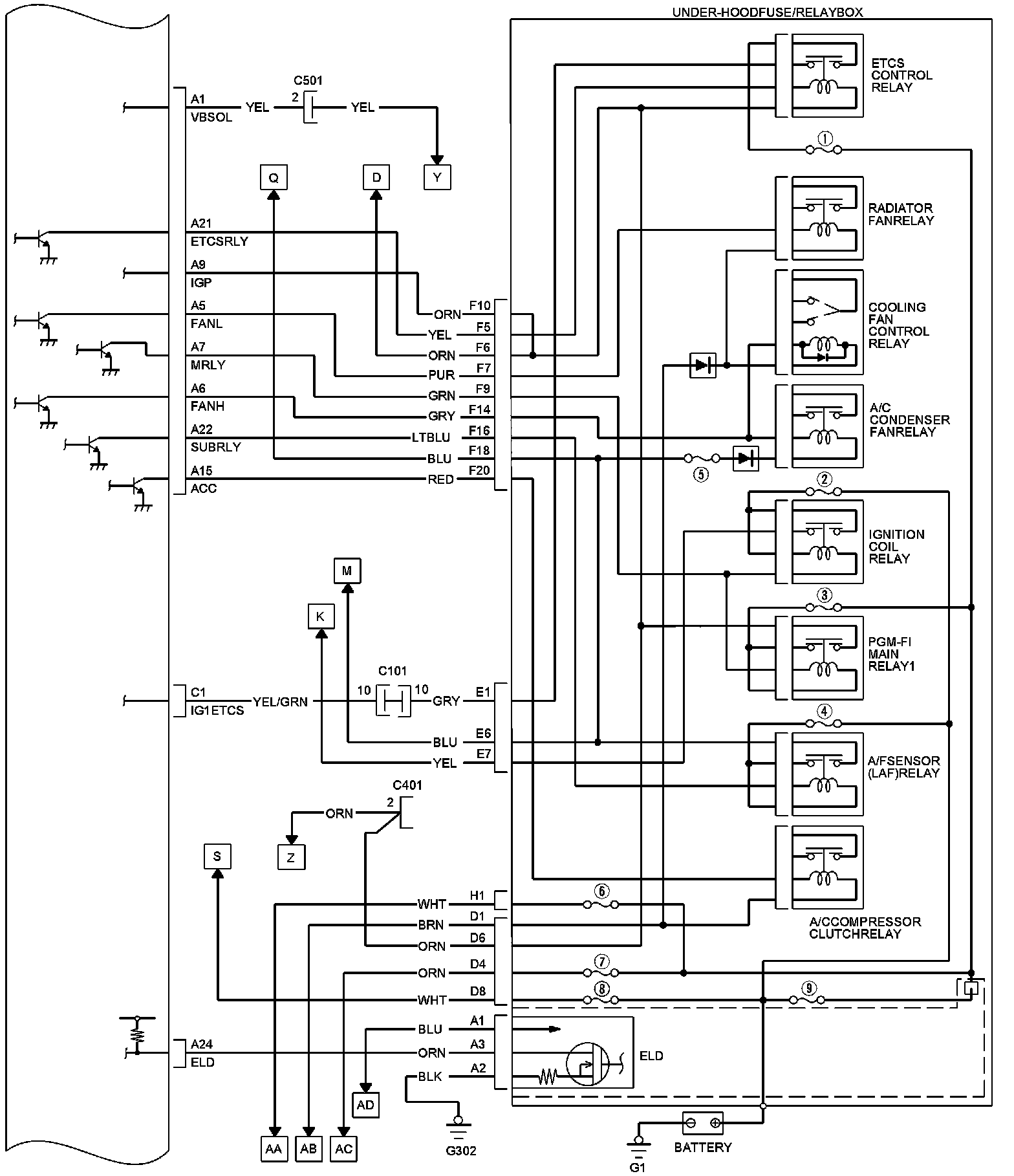 After the ignition switch is turned to LOCK (0), the PCM stays on (about 60 minutes). If the PCM connector is disconnected during this time, the PCM may be damaged. To cancel this mode, disconnect the negative cable from the battery or jump the SCS line with the HDS after the ignition switch is turned to LOCK (0).