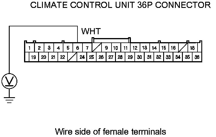 7. Measure the voltage between the climate control unit 36P connector terminal No. 6 and body ground.