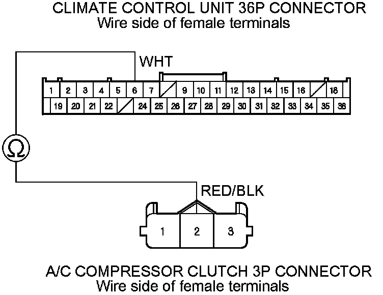 Check for loose wires or poor connections at the climate control unit 36P connector and at the A/C compressor clutch 3P connector. �