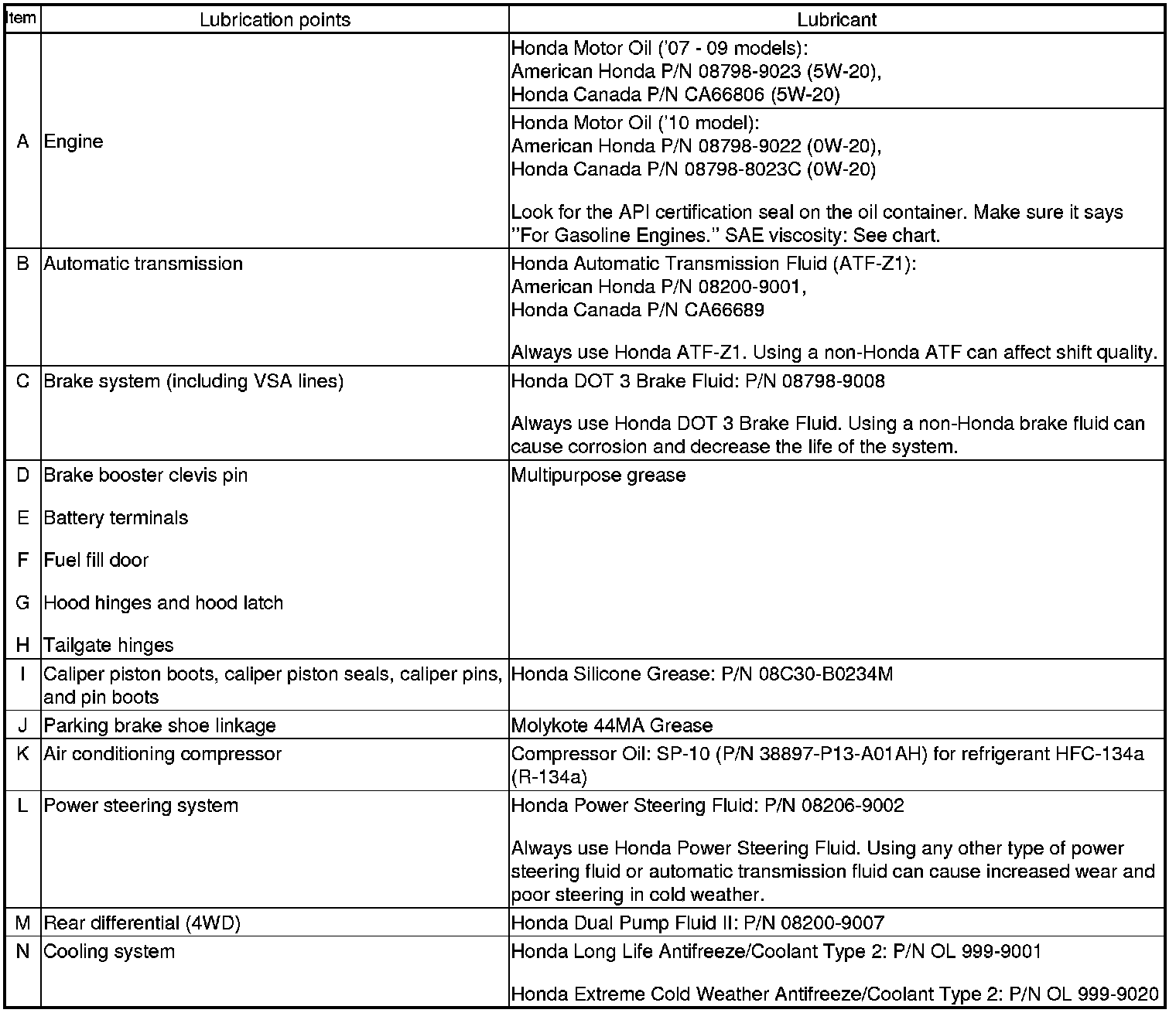 Home >> Honda >> 2010 >> CR-V 2WD L4-2.4L >> Repair and Diagnosis >> Specifications >> Fluid Type Specifications >> Fluids