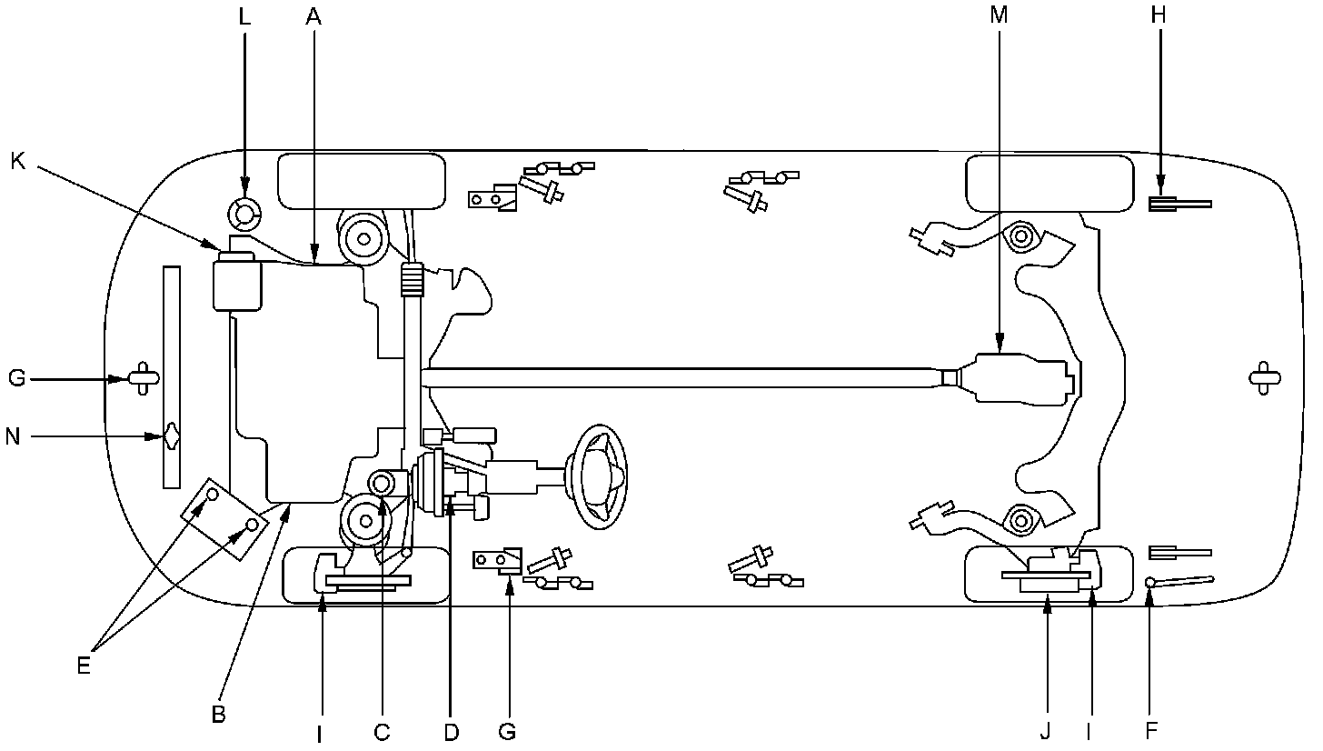 - Lubricate the following areas using the recommended lubricants and fluids.