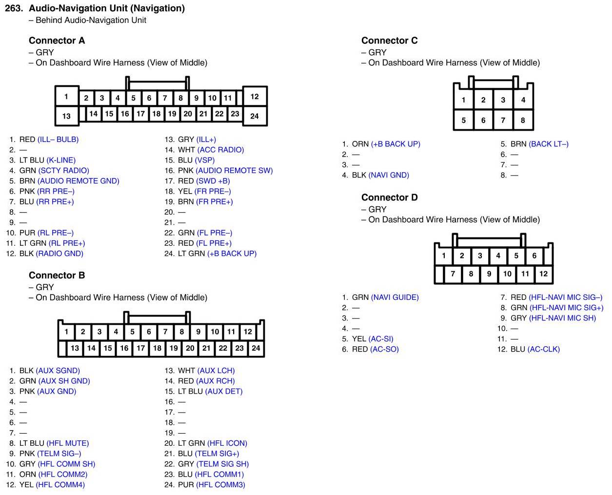 Audio-Navigation Unit Connector View (Navigation)