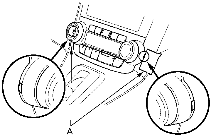 2. Place protective tape (A) on both sides of the dashboard next to the climate control unit.