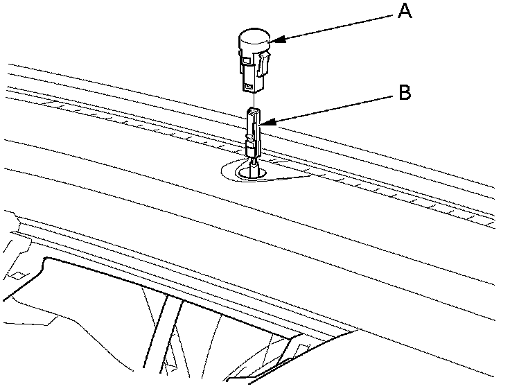 2. Push out the sunlight sensor (A) from behind the dashboard. Disconnect the 2P connector (B) from the sunlight sensor. Be careful not to damage the sensor or the dashboard.