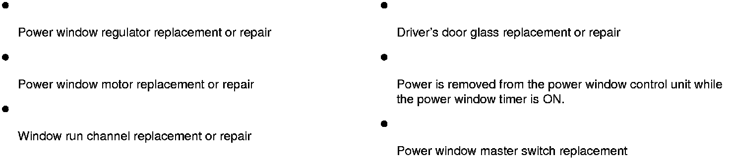Reset the driver's power window after doing any of the following actions: