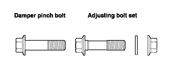 - The camber angle can be adjusted up to ±20 ' (center of tolerance) by replacing one damper pinch bolt with the adjusting bolt.