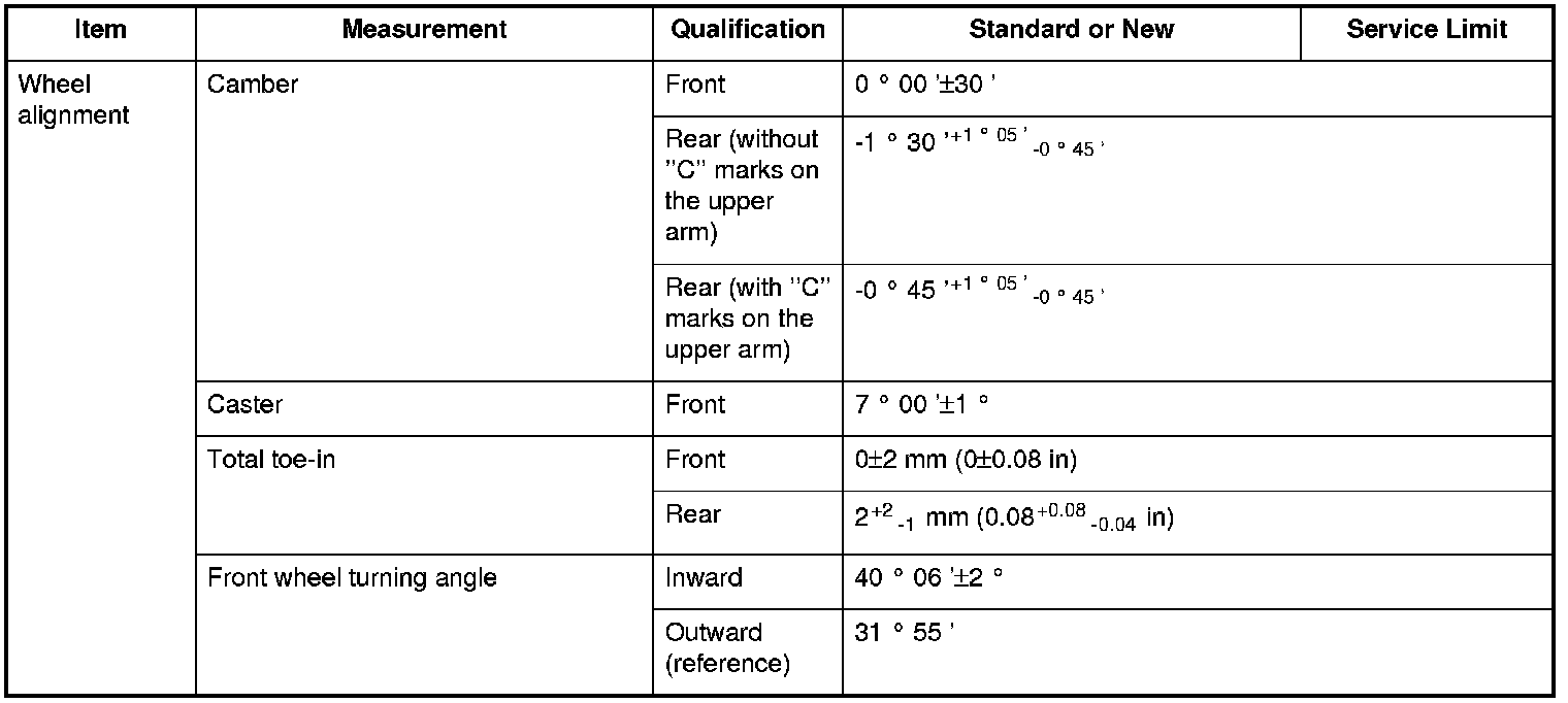 Wheel alignment Specifications