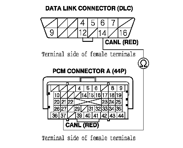 32. Check for continuity between PCM connector terminal A37 and DLC terminal No. 14.