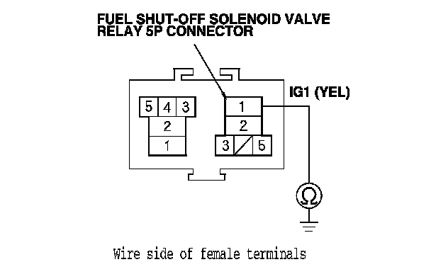48. Check for continuity between the fuel shut-off solenoid valve relay 5P connector terminal No. 1 and body ground.