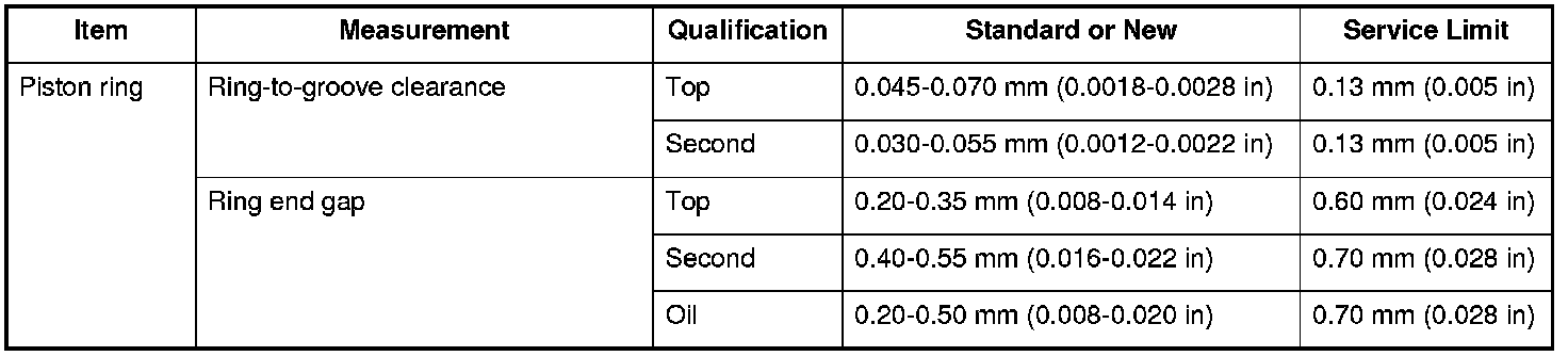 Piston Ring Specifications